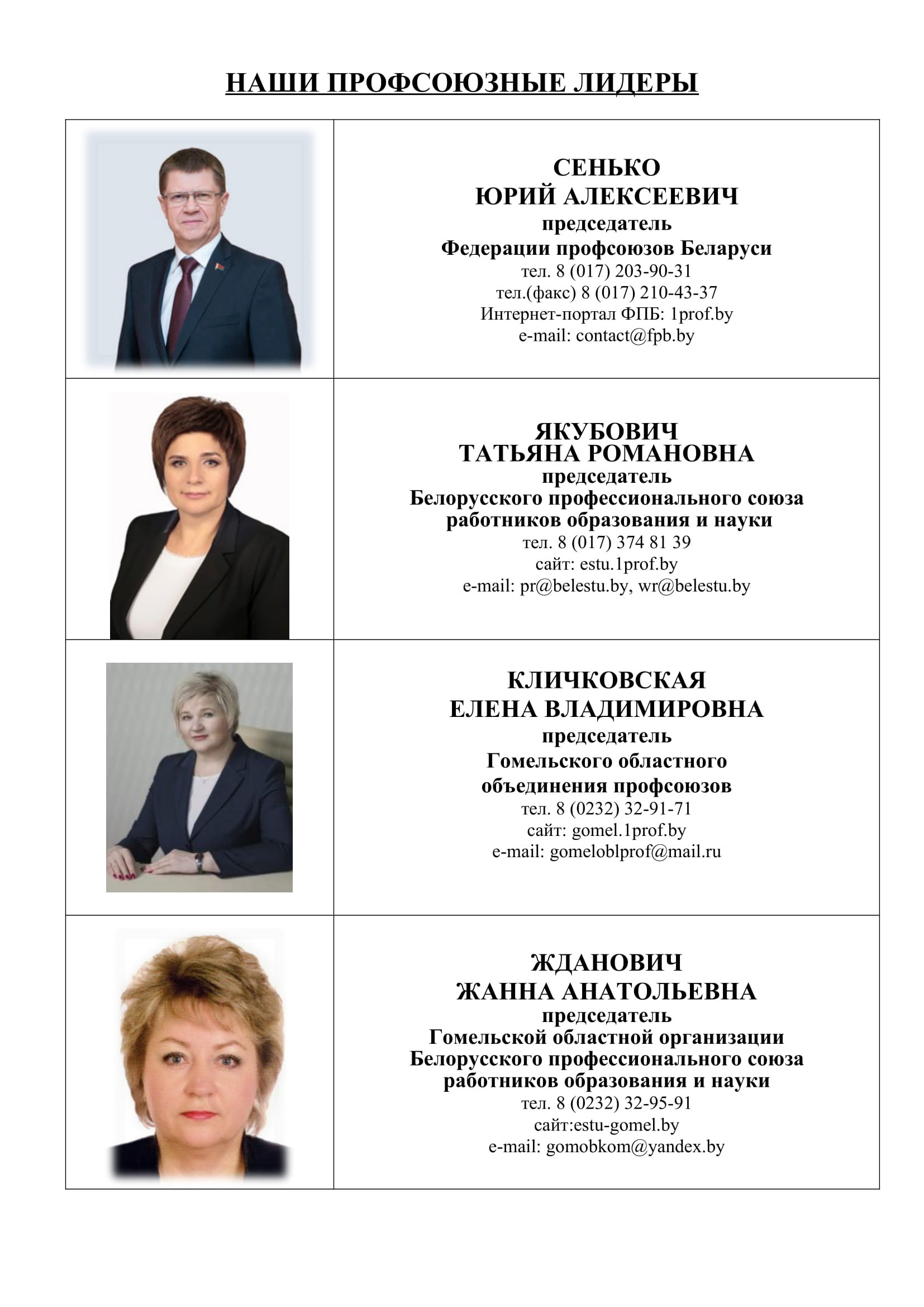 председатель Буда-Кошелевского районного комитета Профсоюза Тел. (02336) 7 58 03